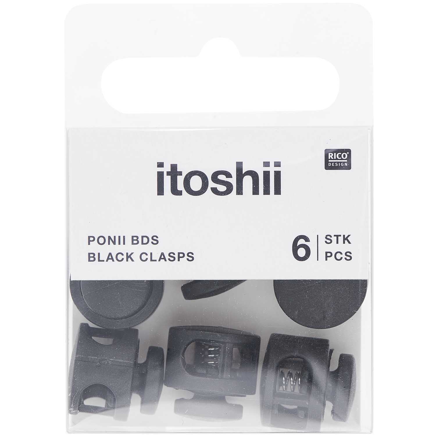 6 Stk., ca. 13.7 x 13.9 mmMit diesen coolen Verschlüssen lassen sich Ihre Ponii Beads Ketten oder Armbänder sicher verschliessen. Die beiden Enden werden durch den Verschluss geschoben und durch eine Druckfeder festgehalten. So steht einer wilden Nacht auf der Tanzfläche nichts mehr im Weg. • Verschluss geeignet für Ponii Beads-Kreationen • Material: Plastik • Grösse: 14 x 9 mm • Inhalt: 6 Stück