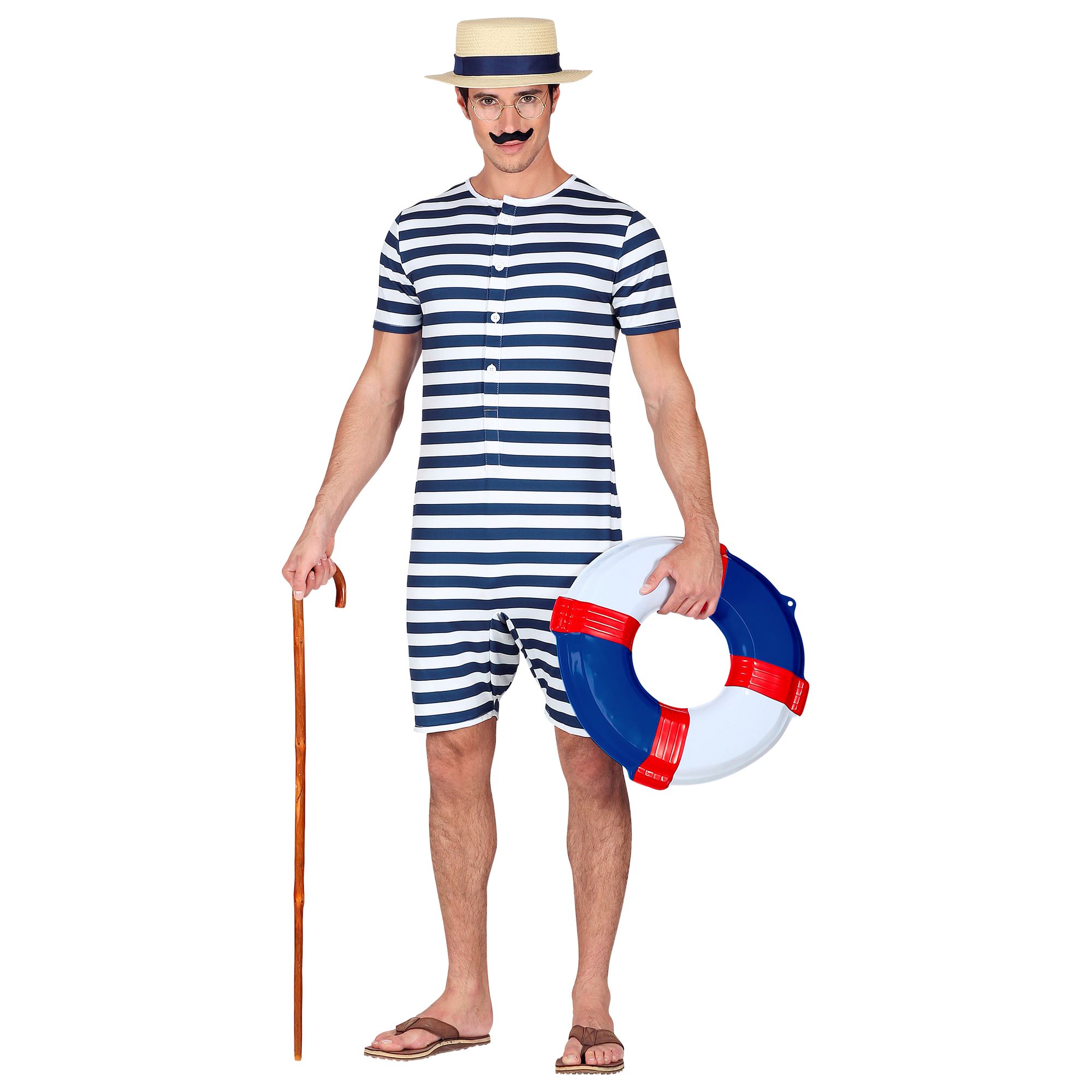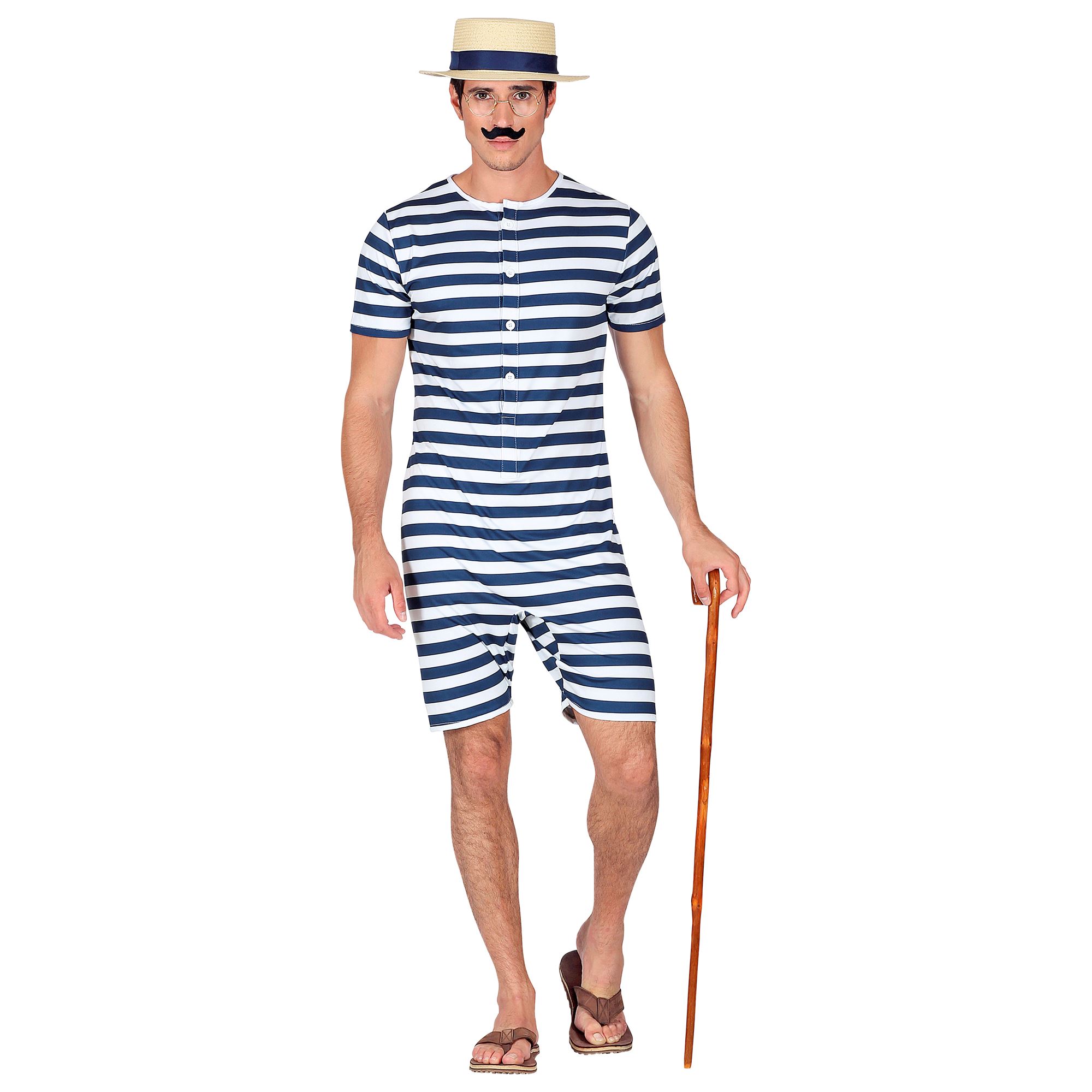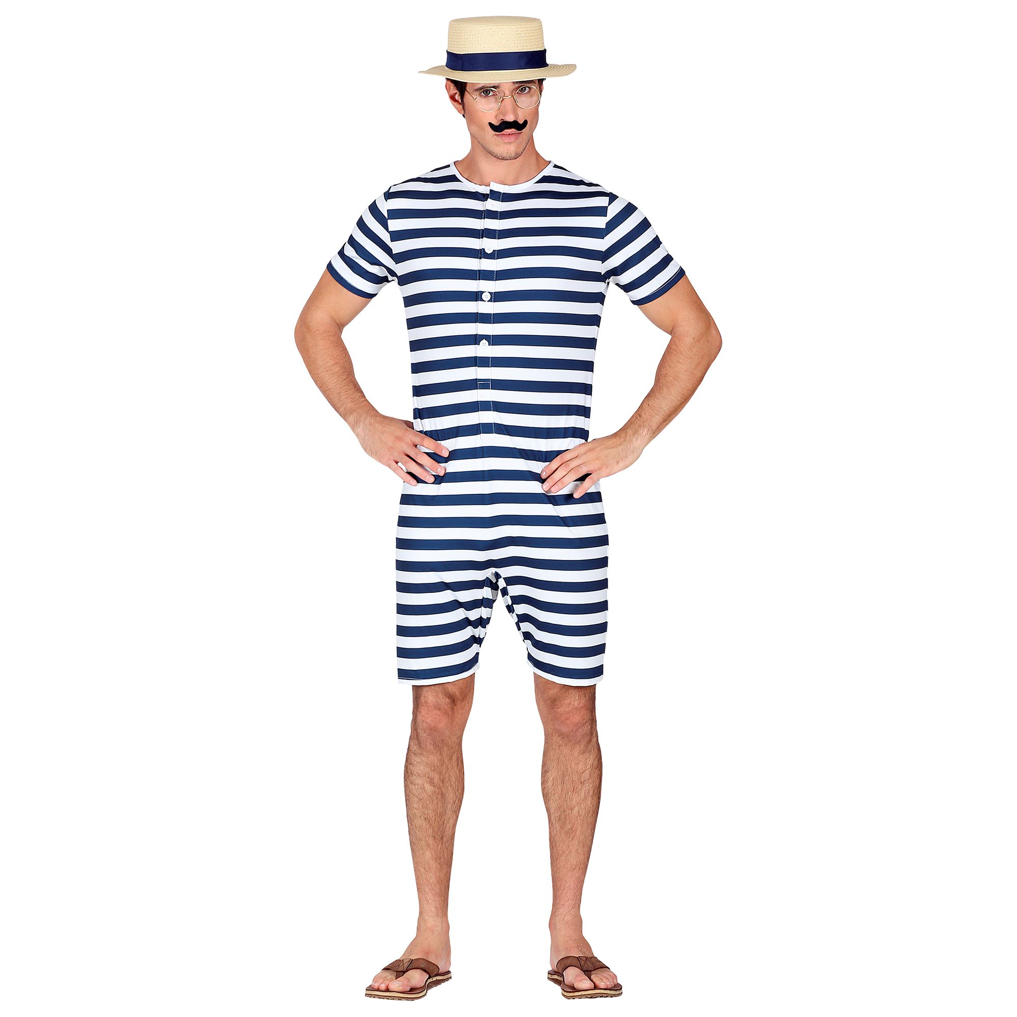 Badeanzug Retro, blau/weiss gestreift Gr. XL