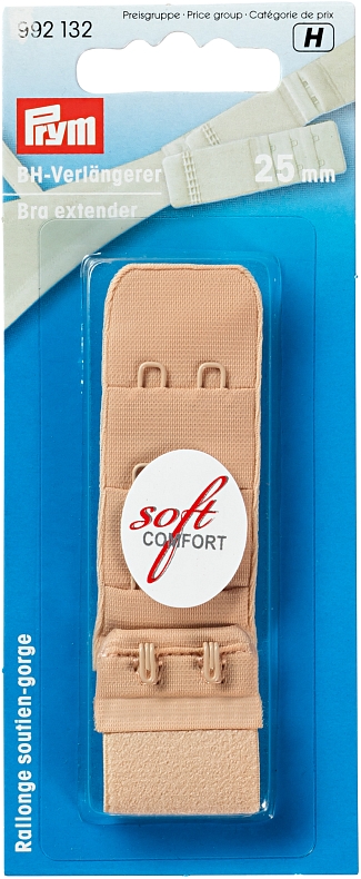25 mm, 3 x 2 Haken, KarteZur Erweiterung des Unterbrustumfangs bei BHs eignen sich die BH?Verlängerer aus Polyamid und Elasthan mit drei Verstellmöglichkeiten. Sie werden einfach zwischen den beiden Enden des BHs eingehakt. Durch das zusätzlich verarbeitete Elastikband und die nahtfreie Verarbeitung lassen sich zu eng gewordene Lieblings?BHs wieder sehr bequem tragen. Im Prym?Sortiment sind die BH?Verlängerer in 5 verschiedenen Breiten zwischen 20Â mm und 75Â mm mit bis zu 4 Hakenösen pro Reihe in 4 unterschiedlichen Farben erhältlich. Sie sind auf Hautverträglichkeit geprüft und waschbar bis 40 Grad.