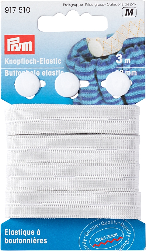 3.4.1.917510 | Prym Knopfloch-Elastic mit 3 Wäsche-Doppelknopf, weiss